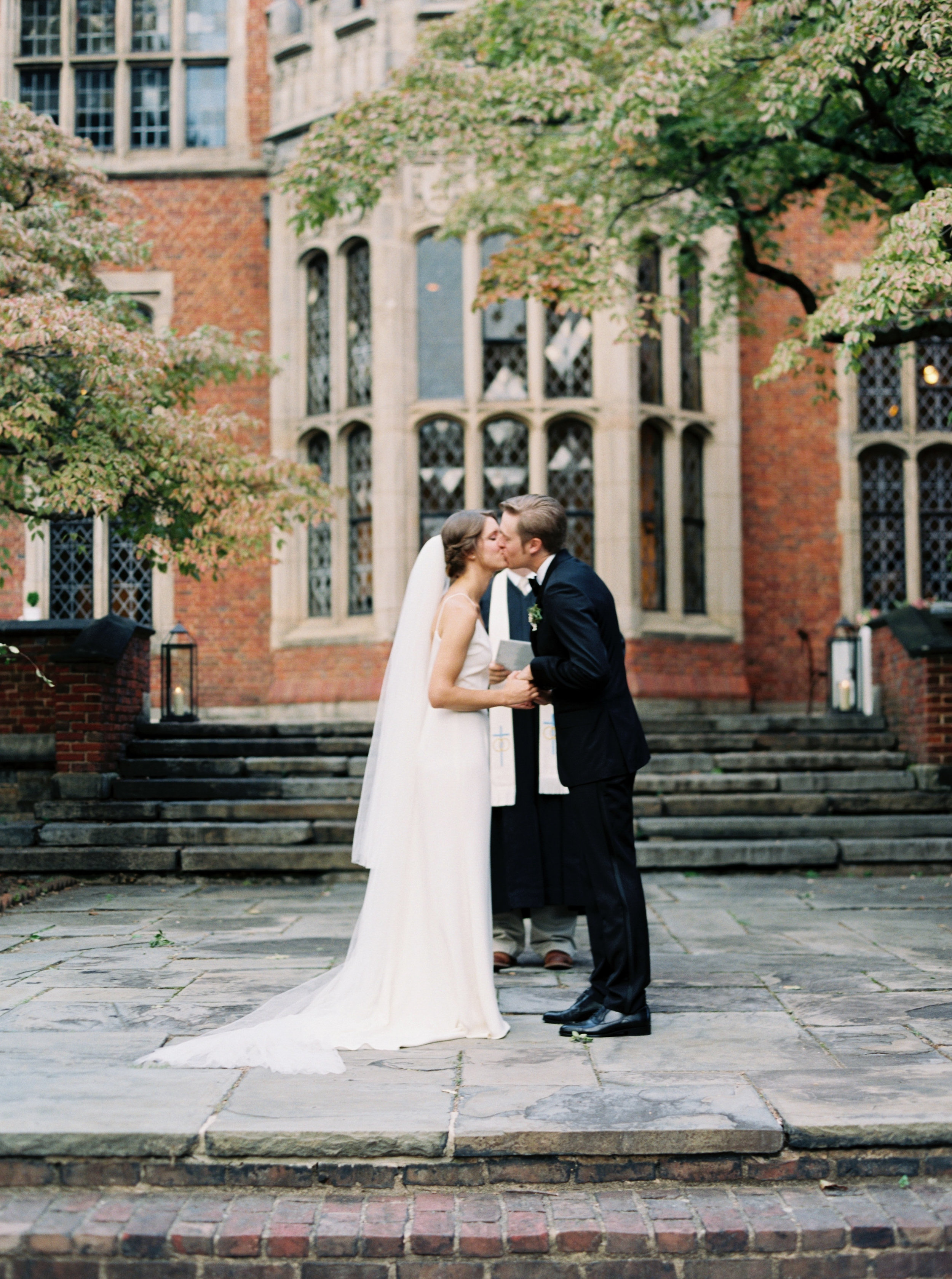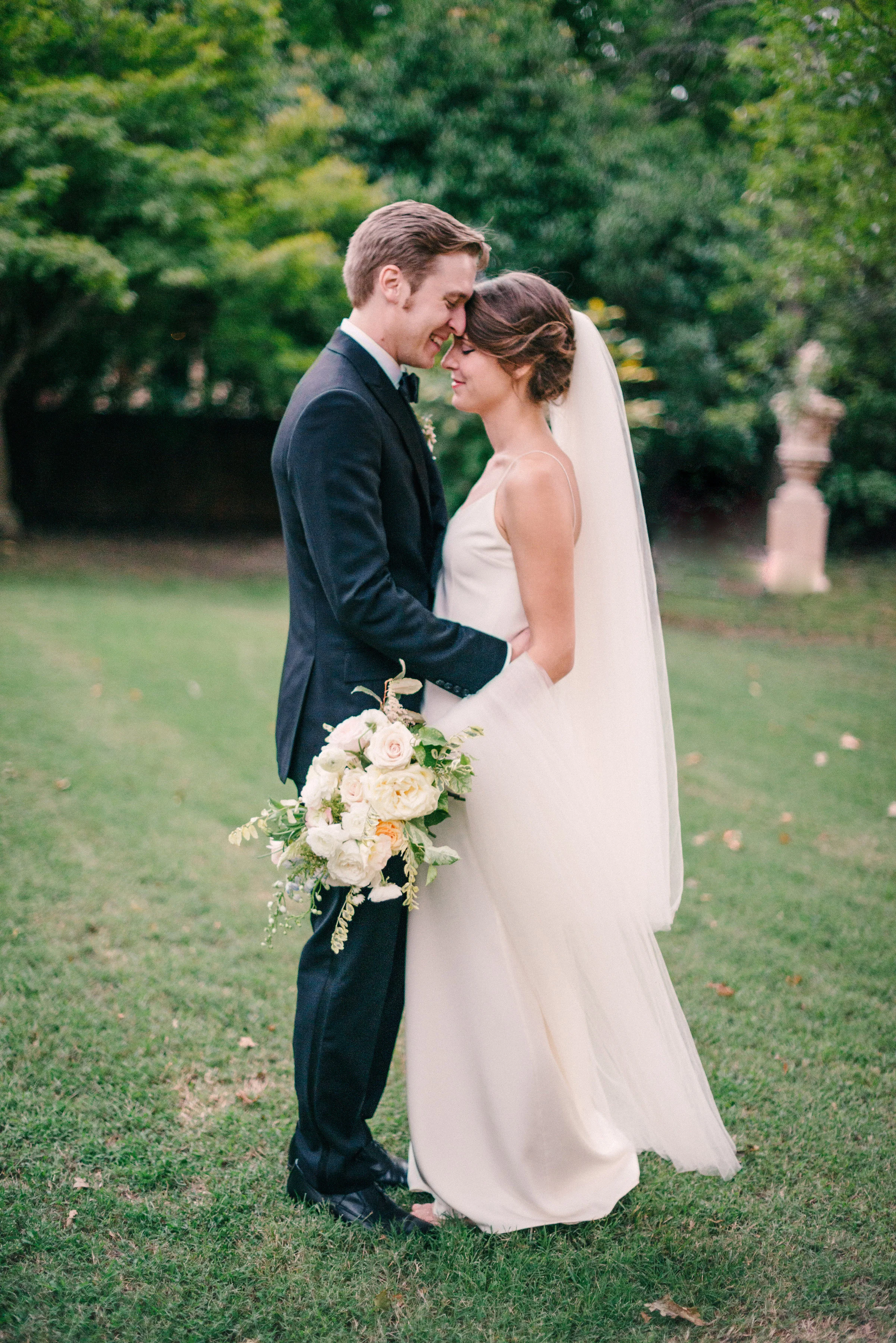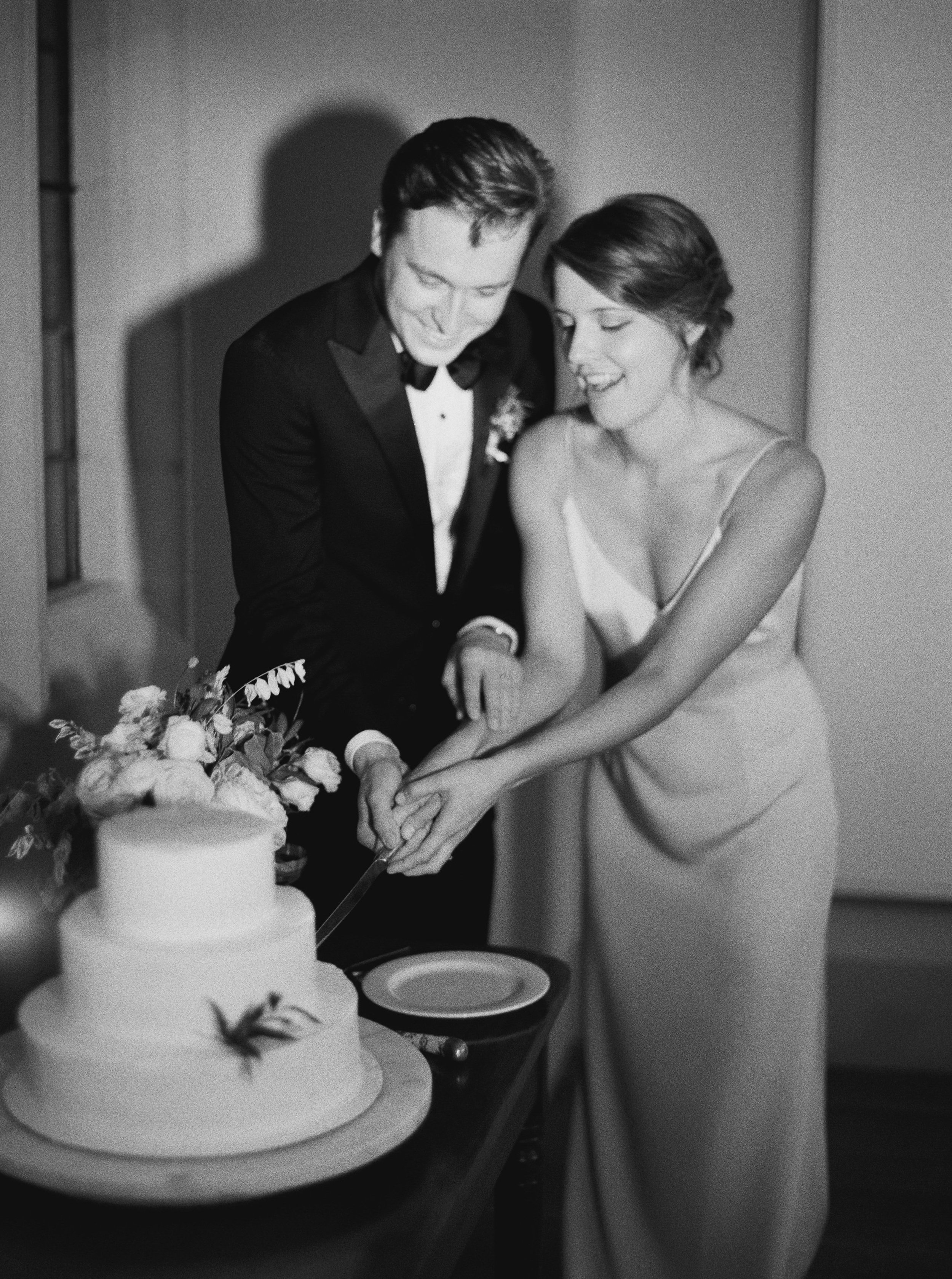 Full Story Credits: Photography by Kim Stockwell Film Lab, Photovision Prints Wedding Planner, Jamie Lynn Signature Weddings Venue, The Branch Museum Florist, Photosynthesis Floral Design Rentals from Classic Party Rentals Wedding Cake by WPA Bakery Hair & Makeup by Blackbird Salon Band, The Original Moonlighters Catering by White House Catering Bridal Gown by Alexandre Grecco Stationery by Peyton Sorah