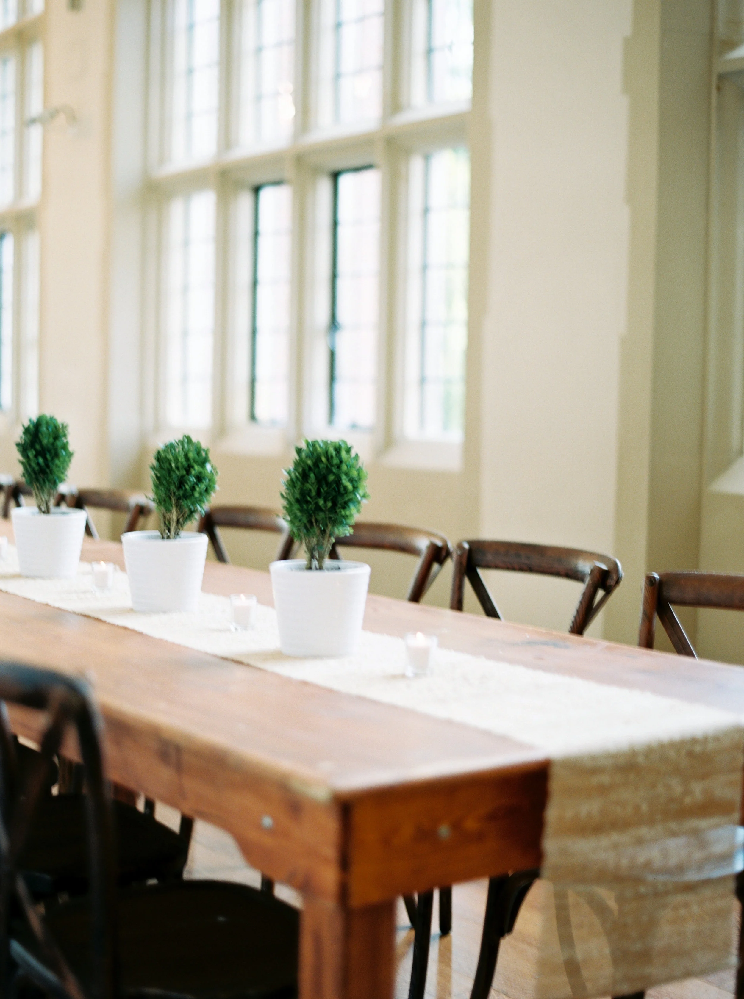Miniature boxwood trees lined the tables of the great hall for Peyton and Johnny’s big day. Peyton and her grandmother grew the trees specifically for her wedding and shaped them so they were just right. Each detail was tended to with precision and grace to create a breathtaking scene for celebration.