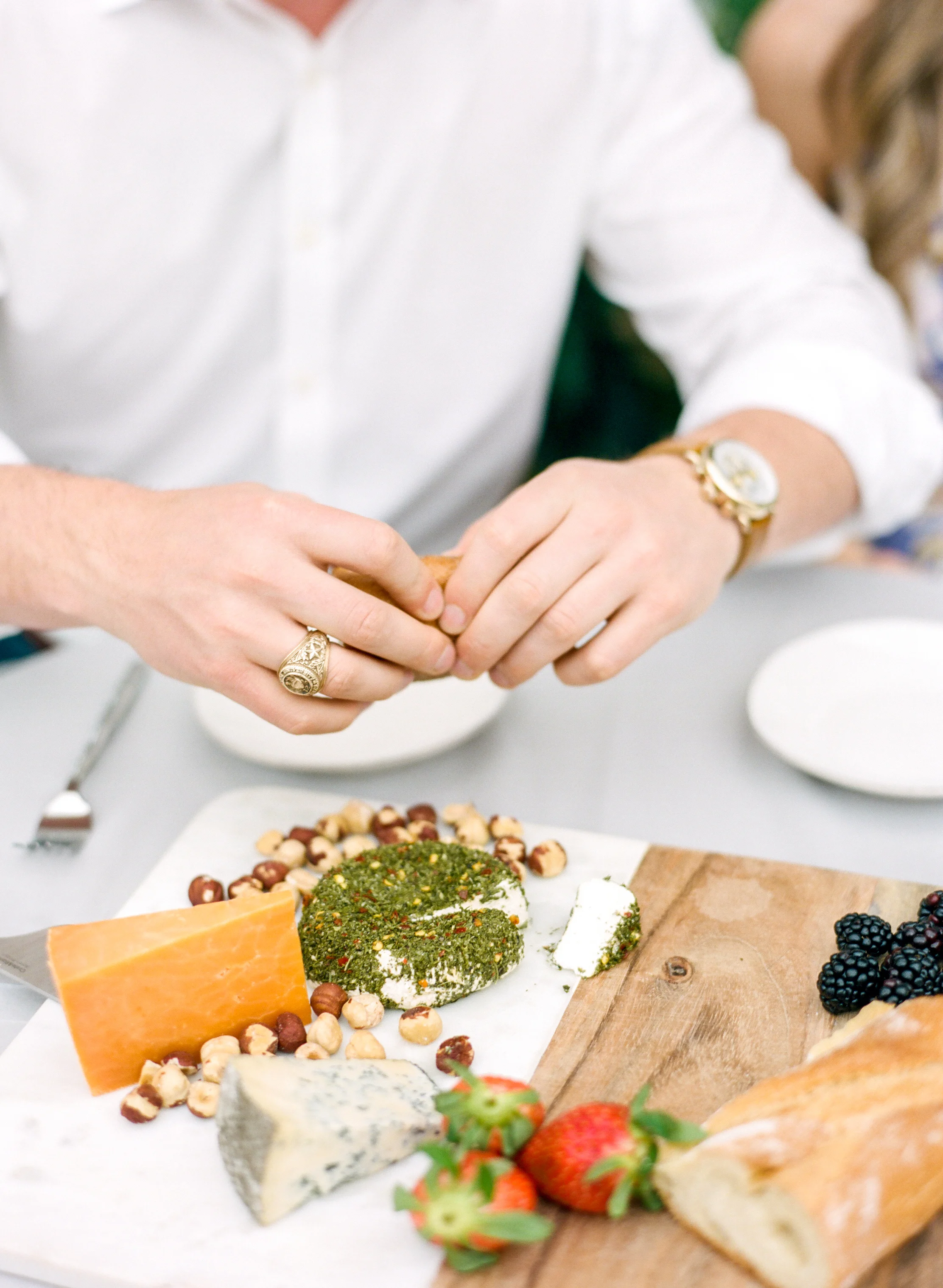 Photography by Dana Fernandez Photography :: Film Lab The FIND Lab :: Styling & Design by Catherine Duffin from Two Be Wed :: Florals and Greenery by Bramble and Bee :: Makeup and Hair by Hey Lovely Makeup :: Venue Gardens of River Oaks :: Cheese, Bread, and Accompaniments by Houston Dairymaids :: Chairs and Table and Table Linen by Aztec Events and Tents :: Salt Cellar by Williams Sonoma :: Cheese Board by Sur La Table :: Glassware and Plates by Crate and Barrel:: Flatware and Napkins by World Market