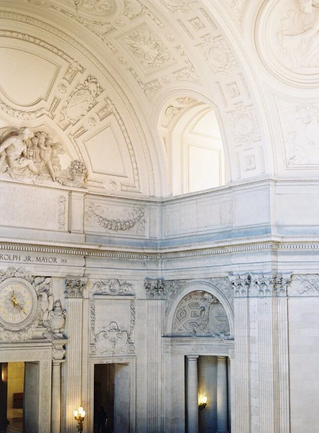 "The newlyweds eloped on a Monday surrounded only by six of their closest family and friends. The sweet simplicity of their wedding day matched with the elegance of San Francisco City Hall truly made their day about the love they have for each other and the love of those who have supported them along the way. The intimacy of their elopement and the celebration of their union made it about so much more than just the wedding day itself, and the golden tones and beautiful architecture of San Francisco City Hall provided a warm invitation for this couple to enter into their next chapter as husband and wife."